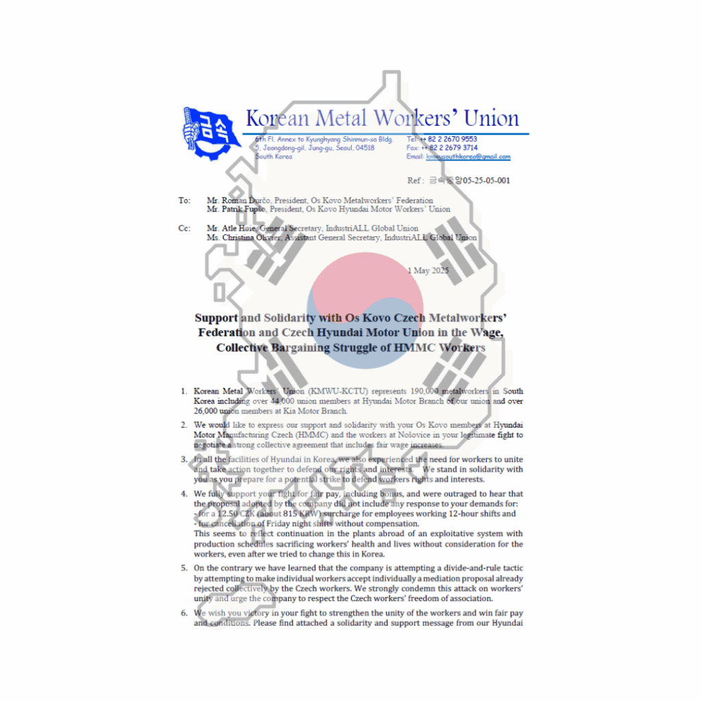 02/05/2025 Včera, stylově na Svátek práce, nám naši kolegové odboráři z opačné části světa, zaslali podpůrný dopis, vyjadřující nejen solidaritu ohledně našeho boje za lepší pracovní podmínky, viz ZDE ( s překladem dokáže pomoci kupříkladu google překladač ). Dnes nám pak podporu vyjádřili i naši nejbližší kolegové ze Slovenska ( sdíleli jsme ráno na našem FB ), takže jak je vidno, nejsme v tom sami!!! 🙂